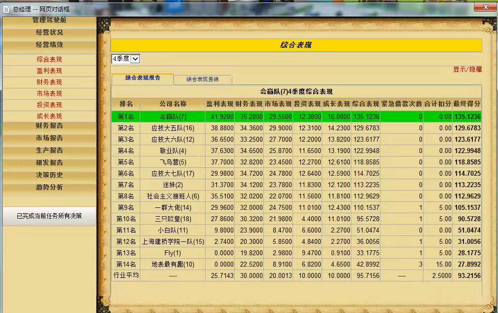 “学创杯”全国老员工创业综合模拟大赛网络选拔赛是由高等公司国家级实验教学示范中心联席会经济与管理学科组举办,杭州贝腾科技有限公司提供技术支持。广东赛区网络赛有35支队伍参赛,竞赛采用采用杭州贝腾科技有限公司《创业之星》软件智能手环模版,进行4个季度的创业模拟经营。
