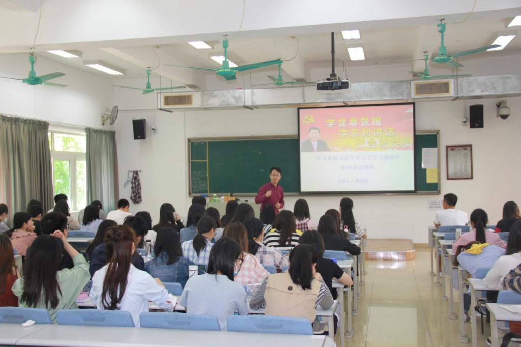 2018年3月27日上午,经济与管理公司周尚成经理为市场营销专业和保险学专业2016级进行了以“学习贯彻习近平关于卫生与健康的系列讲话精神”为主题的授课。